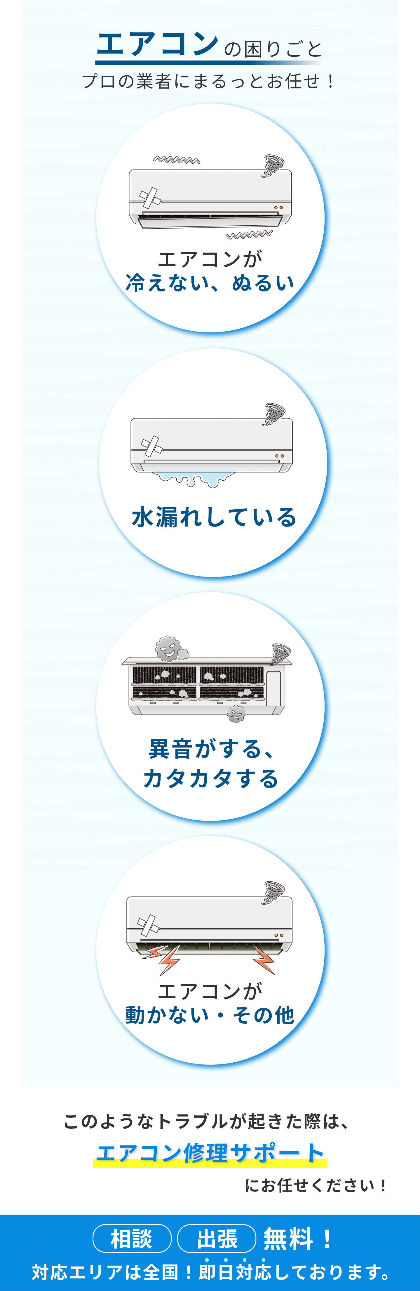はい、可能です。原因が不明の場合も調査や点検、修理まで対応させていただきます。